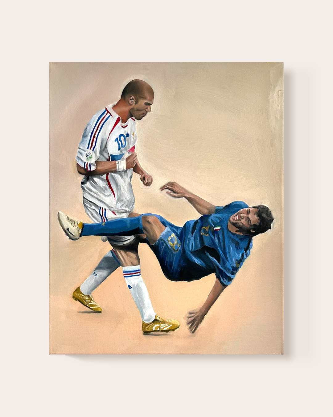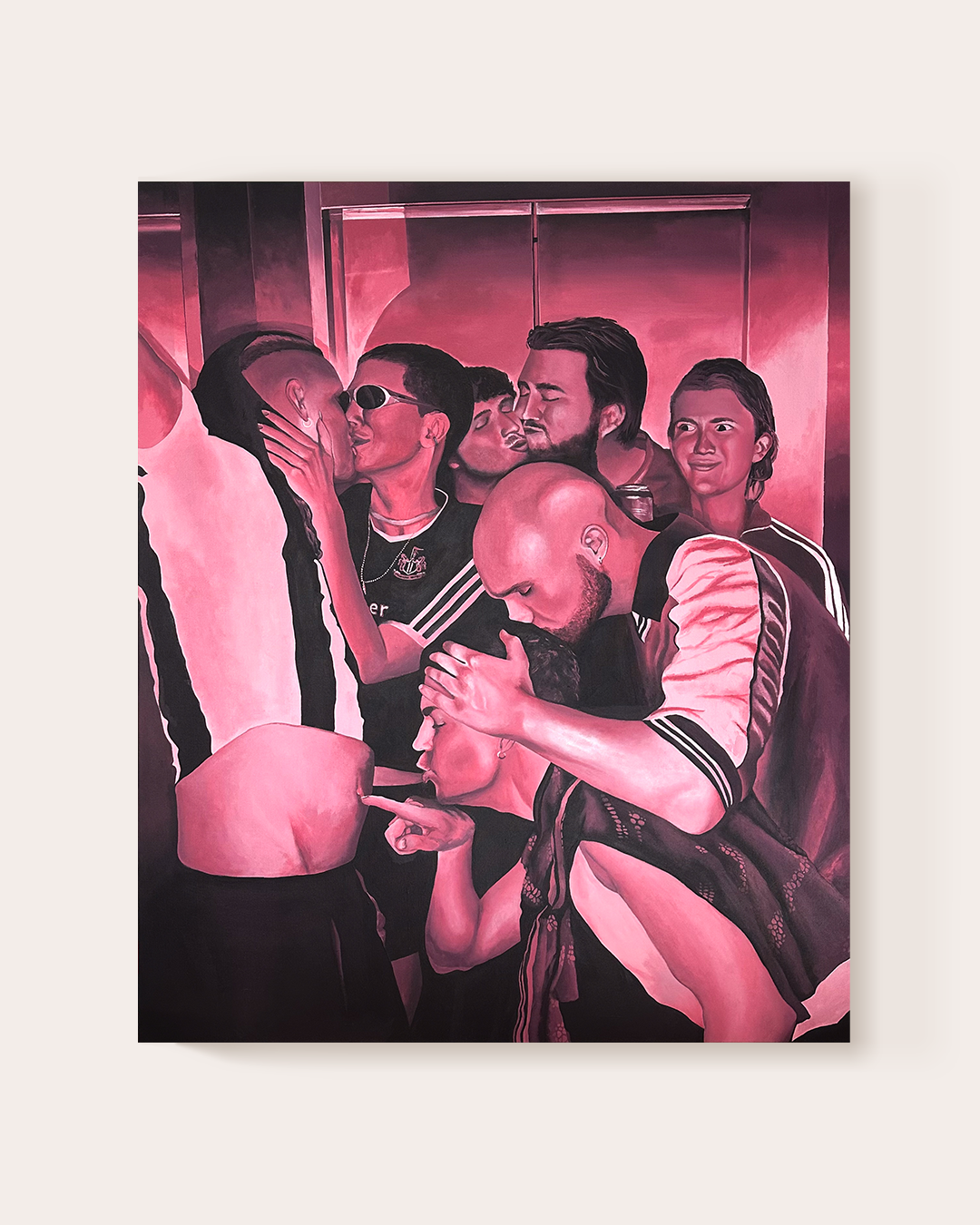 Ben Talbot uses painting as a form of discourse, weaving together realism, recollection, and kinship to explore interpersonal narratives. Drawing inspiration from the visual language of traditional painters like Goya, as well as photographers such as Martin Parr and Henri Cartier-Bresson, Talbot captures motion and spontaneity within unusual contexts and monochromatic color palettes, infusing his work with irony and light-heartedness. Influenced by his relationships, collaborations with friends, and cultural references such as sports, Talbot paints playful, nostalgic moments frozen in time. Through soft brushstrokes, he immortalizes the beauty and meaning in the everyday, reflecting the community that shapes his life. Recent group exhibitions include Fleeting Moments at Open Gallery (2024) AND SEEING LOUD (2025), IN LONDON. Talbot was born in Manchester, UK in 1996 and currently lives and works in London.